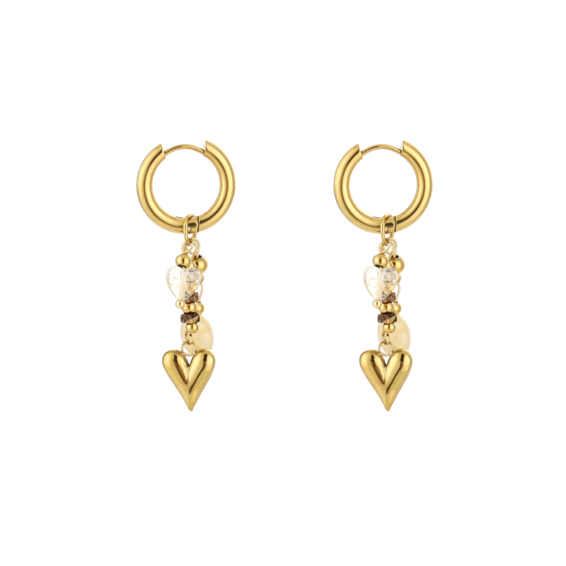 Stainless steel oorringen met goud hartje en kralen