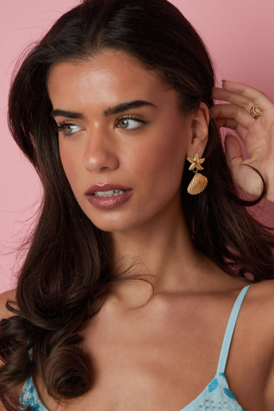 De oorbellen zijn gemaakt van stainless steel, waardoor ze hun kleur behouden en geschikt zijn voor dagelijks dragen. Met een formaat van 4,2 cm vallen ze mooi op zonder zwaar aan te voelen. De goudkleurige afwerking zorgt voor een warme, luxe uitstraling die perfect matcht met lichte lente outfits.