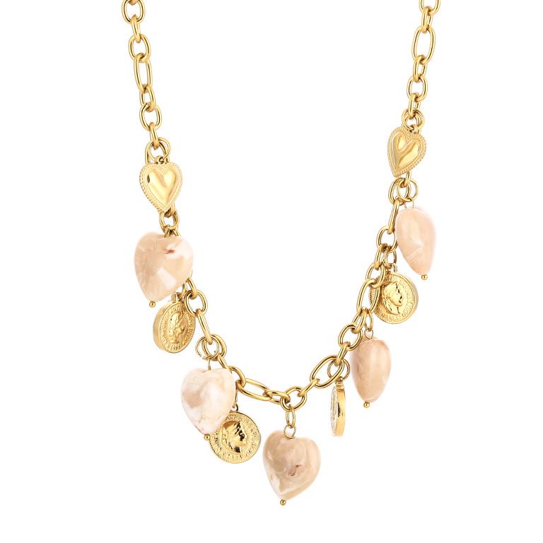 Stainless steel ketting met hartjes bedels beige