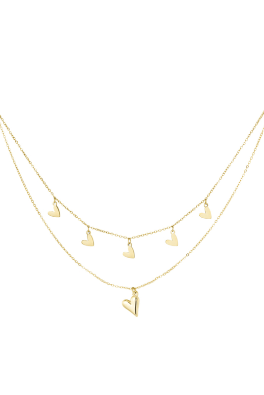 Dubbele ketting met hartjes goud