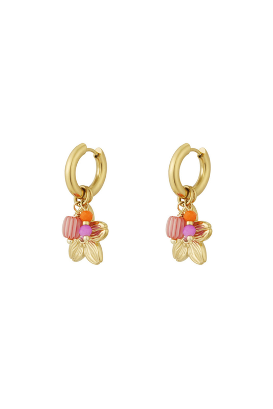 Oorbellen stainless steel goud met bloem